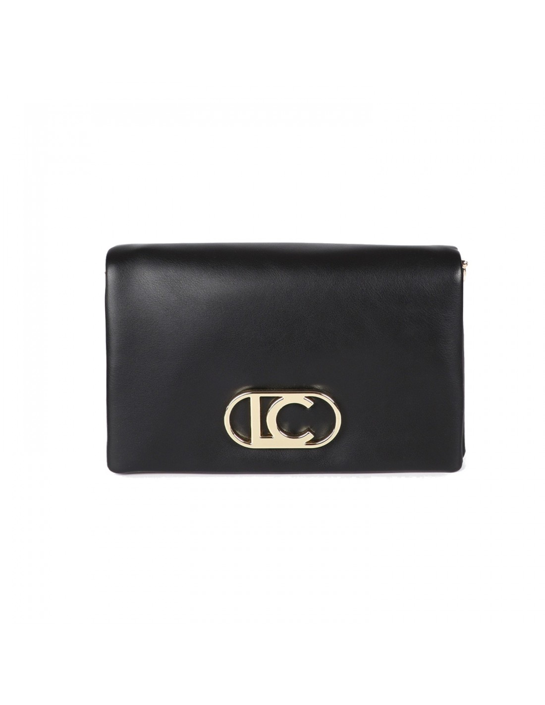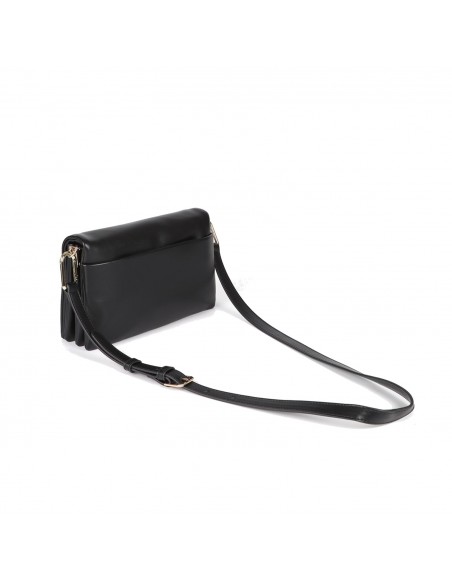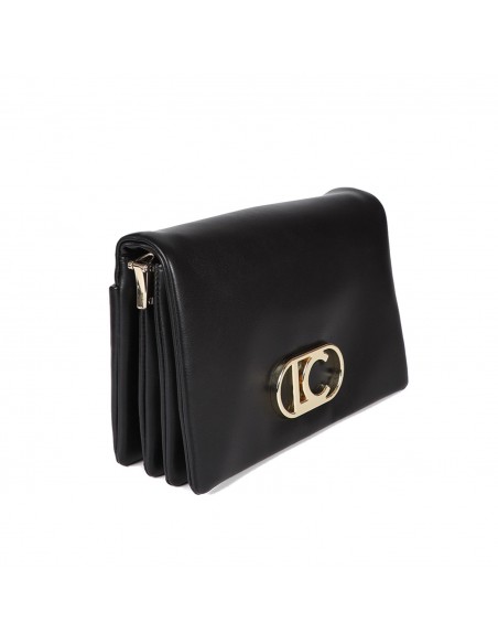 BANDOLERA LC CON LOGO METÁLICO Y CIERRE SOLAPA EN COLOR NEGRO