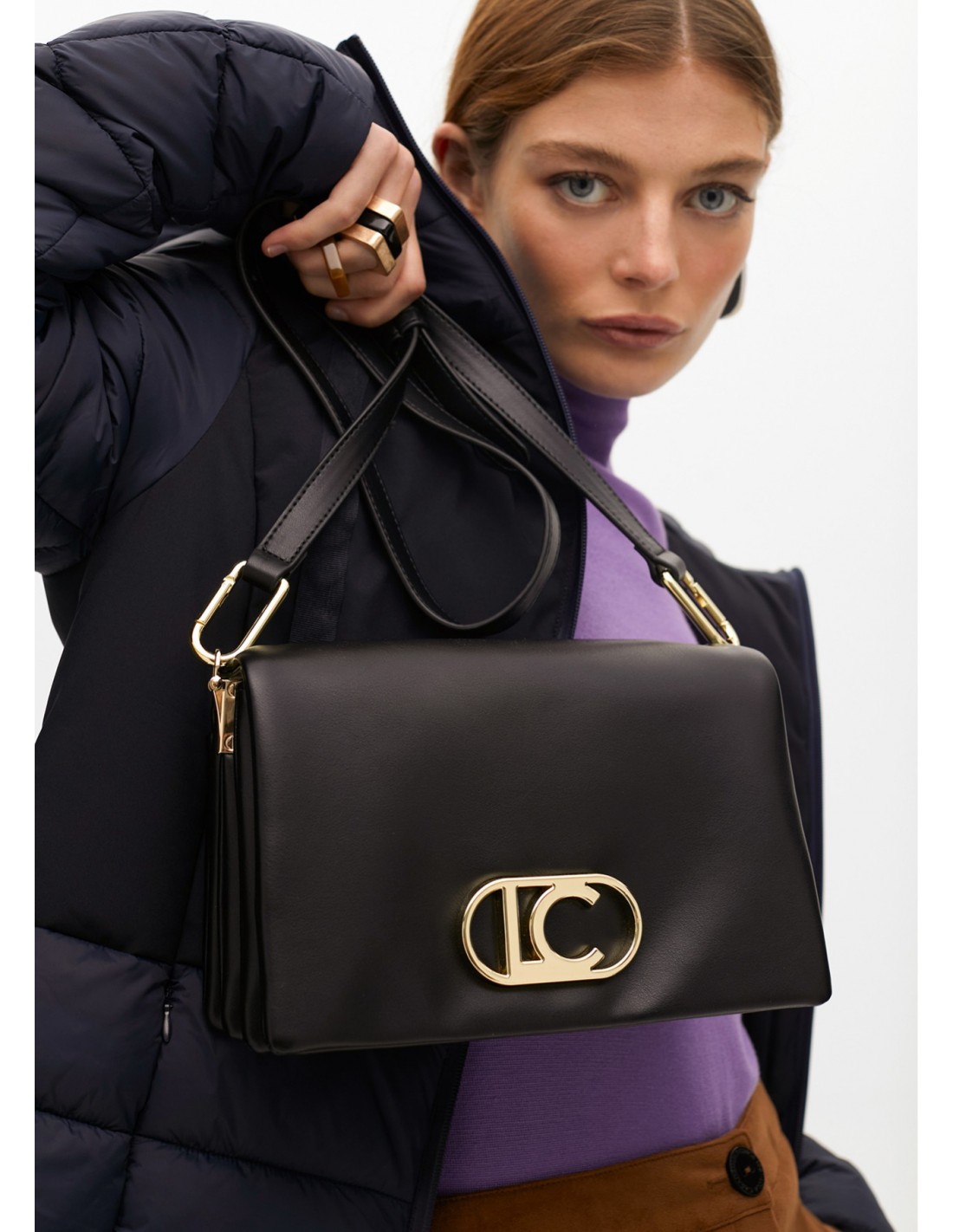 Bolso Bandolera Lola Casademunt con Logo, Solapa, NegroLola Casademunt