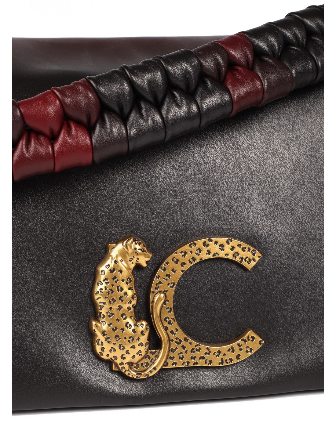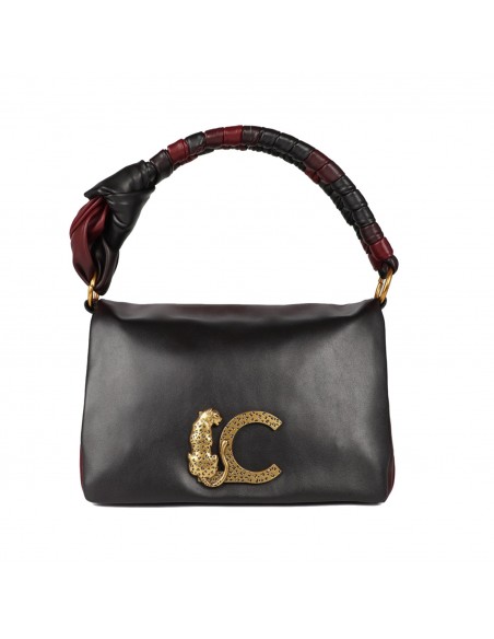 Bandolera elegante con solapa y distintivo logotipo LC de leopardo. Asa con nudo en contraste y correa ajustable. Acabado en materiales de alta calidad. Destaca por su elegancia y estilo único.
