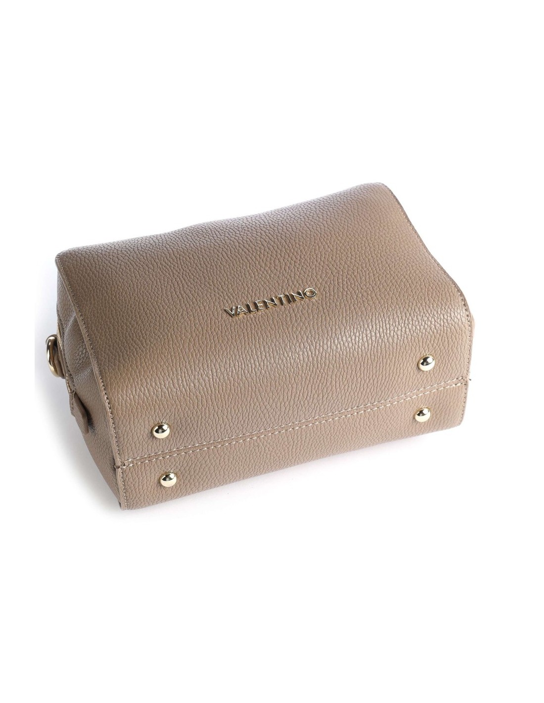 El bolso Valentino Bags Pattie presenta un diseño tipo caja confeccionado en material sintético color taupe con textura granulada.