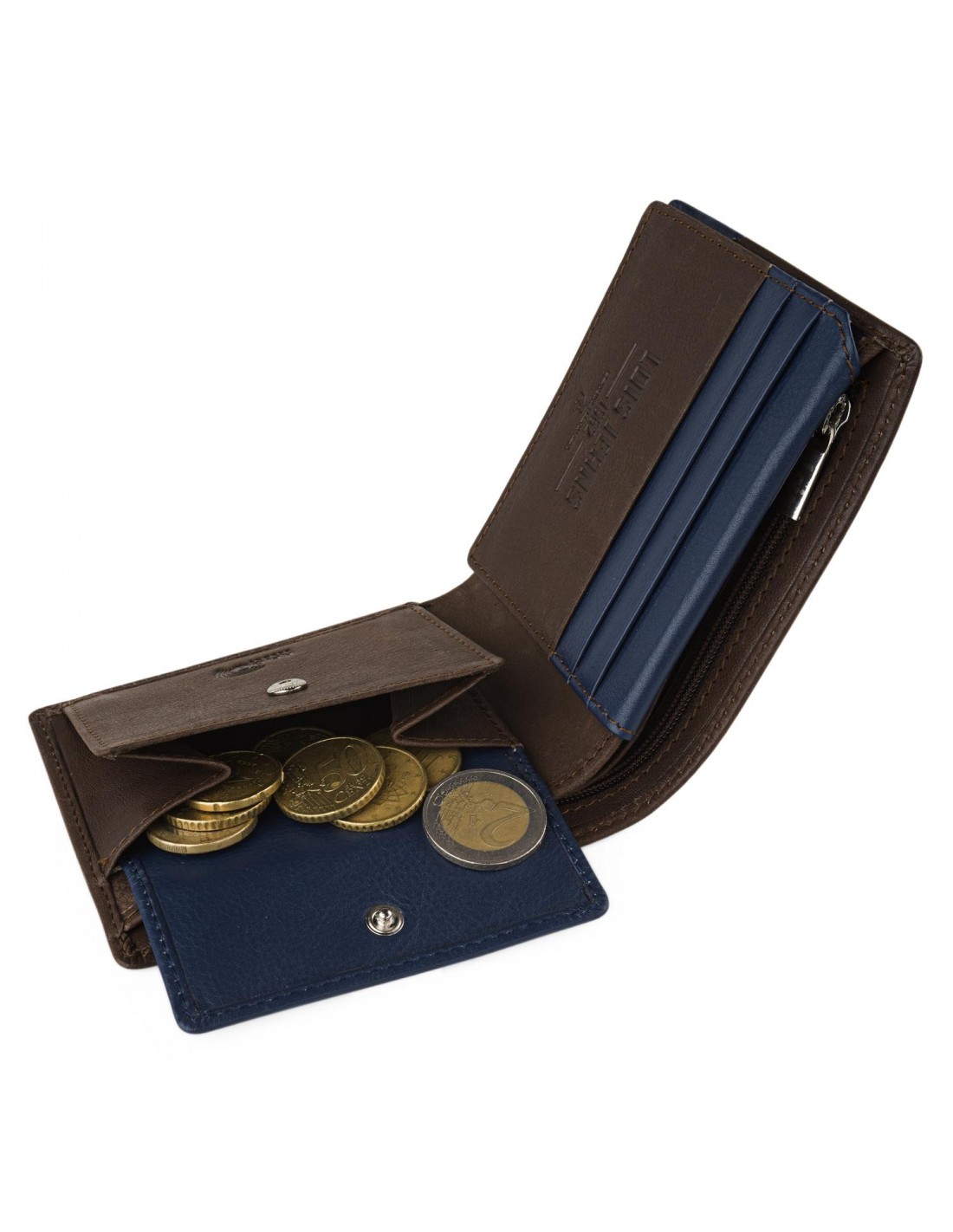 • Billetera de piel con doble monedero.