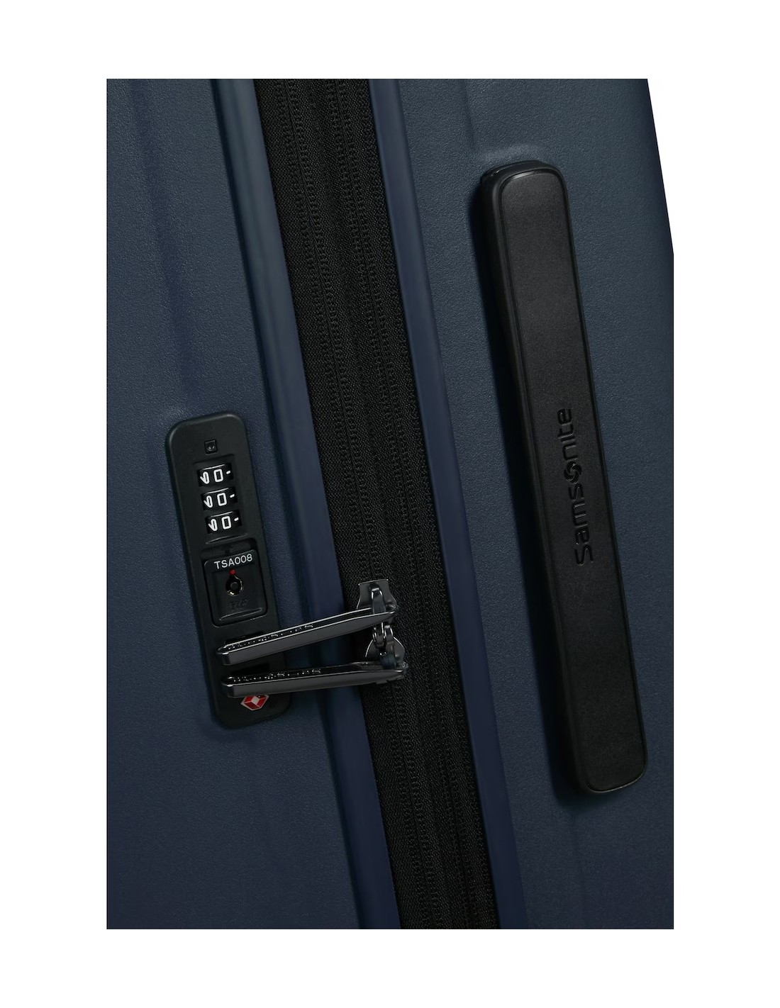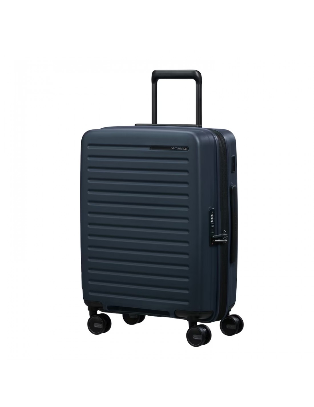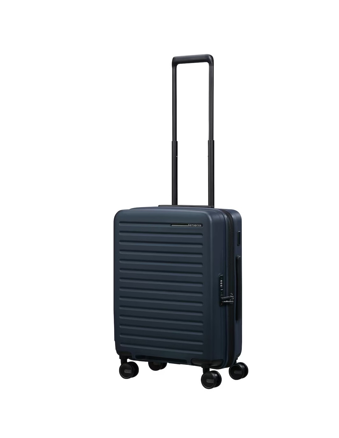 Formato: 55 x 40 x 20 cm. Formato expandido: 55 x 40 x 23 cm. Volumen: 39 L. Volumen expandido: 45 L. Peso: 2,7 kg. Cerradura TSA. Tirador de doble tubo. Asas superior y lateral. 4 ruedas dobles. Etiqueta identificativa. Etiquetas de personalización incluidas. Expandible. Equipaje de cabina.