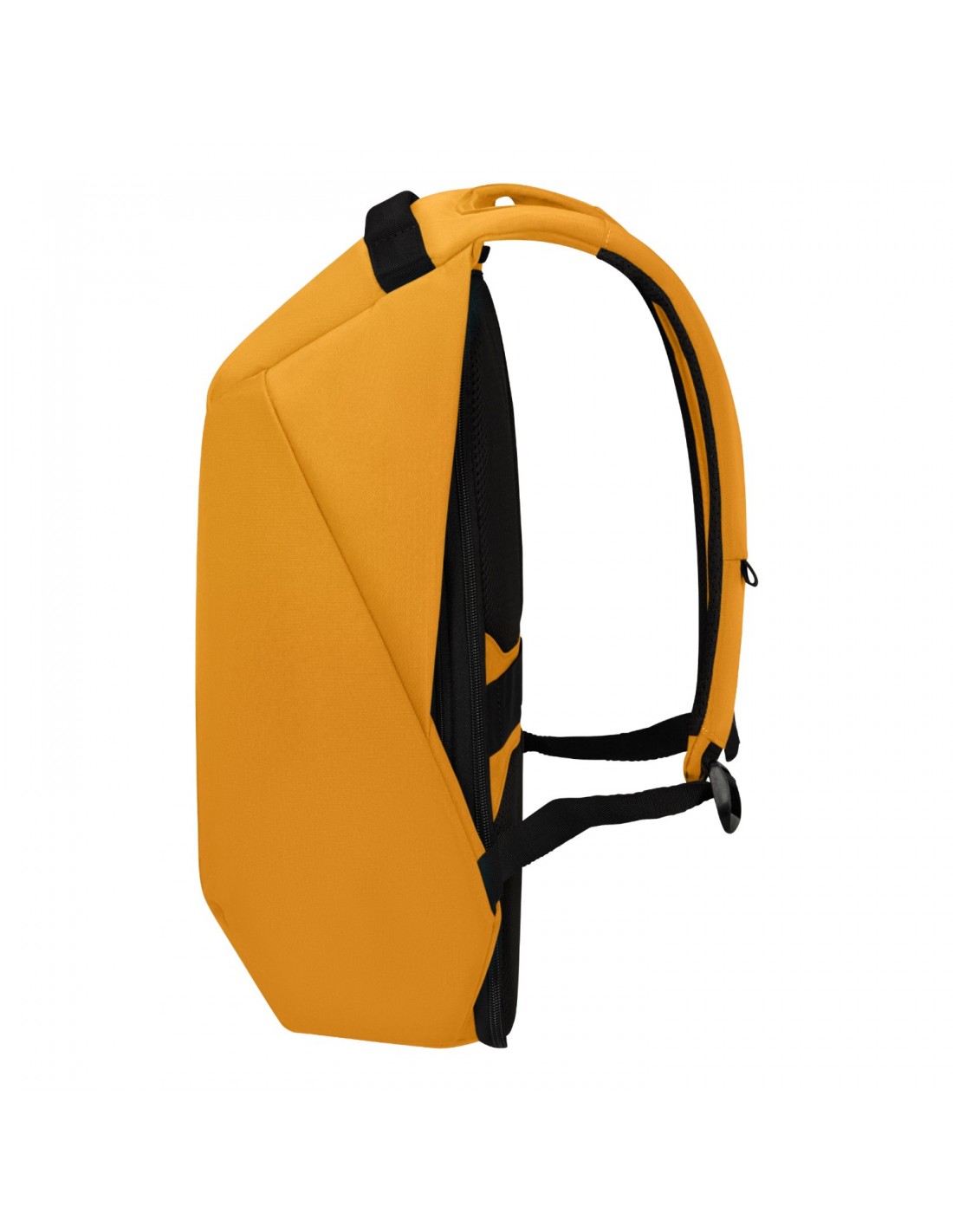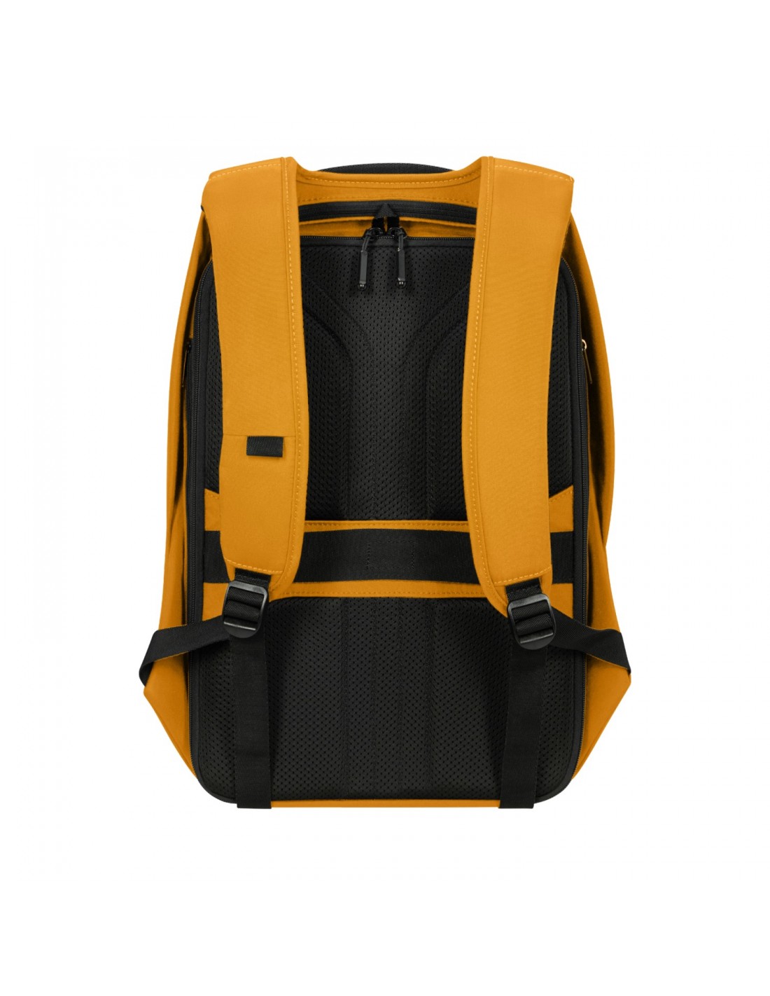 Fabricada en poliéster reciclado de alta resistencia a la rotura y al corte, la mochila Samsonite Securipack en color amarillo destaca por su acceso por la espalda y su sistema antirrobo.