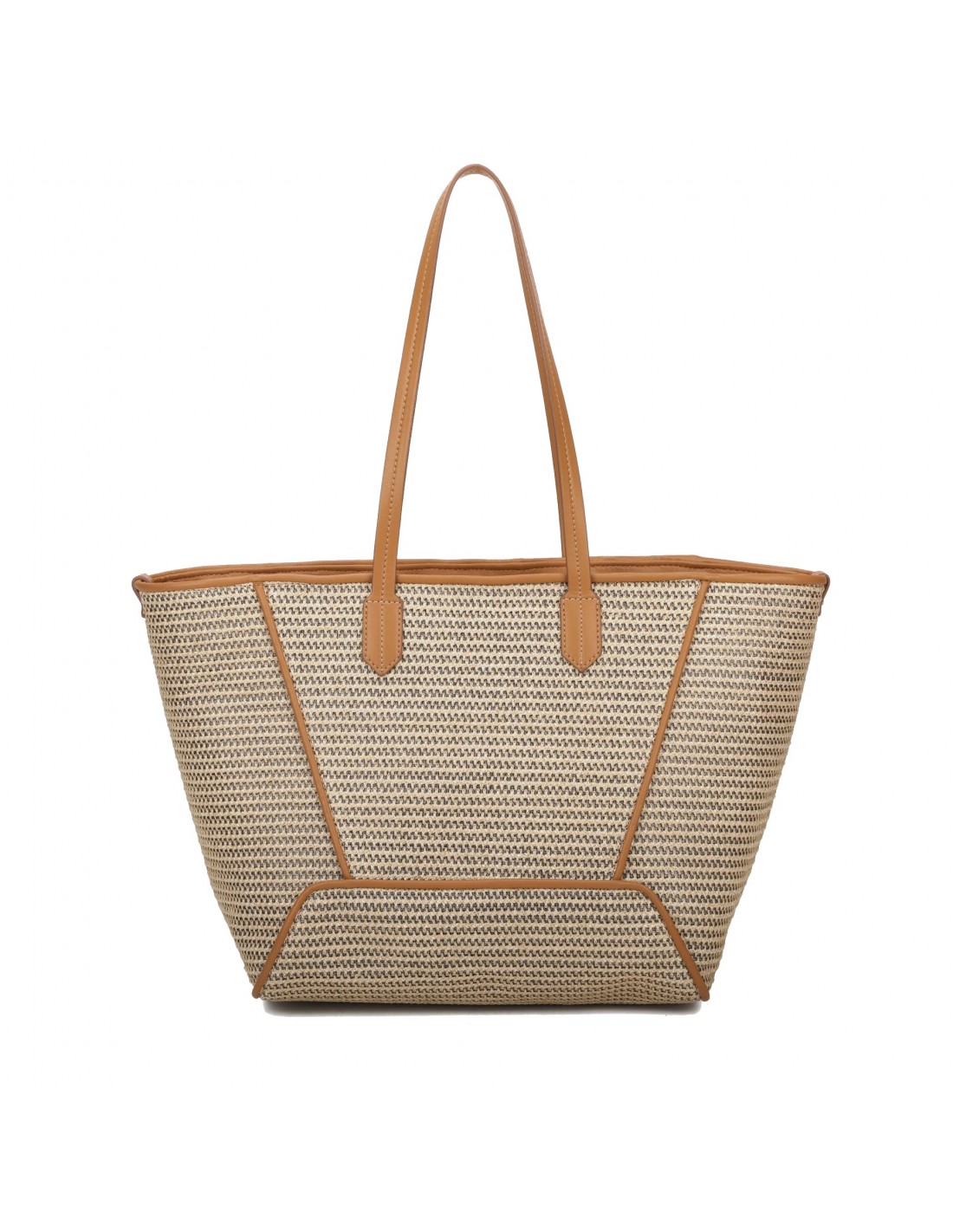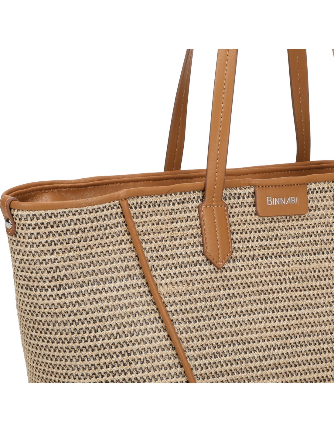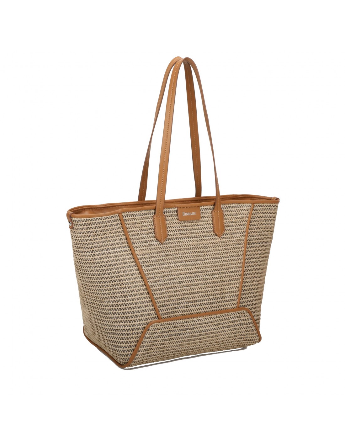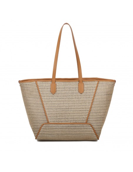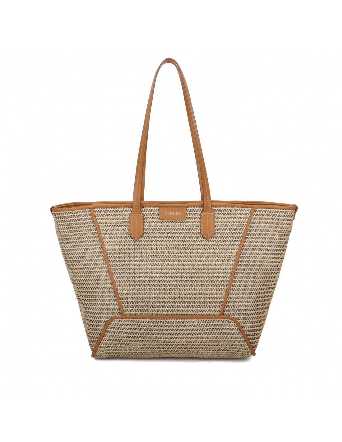Bolso shopper Llobregat confeccionada en rafia y pu de calidad. Destaca por su material de rafia textil de alta calidad y pu, así como sus detalles metálicos en color nickel.