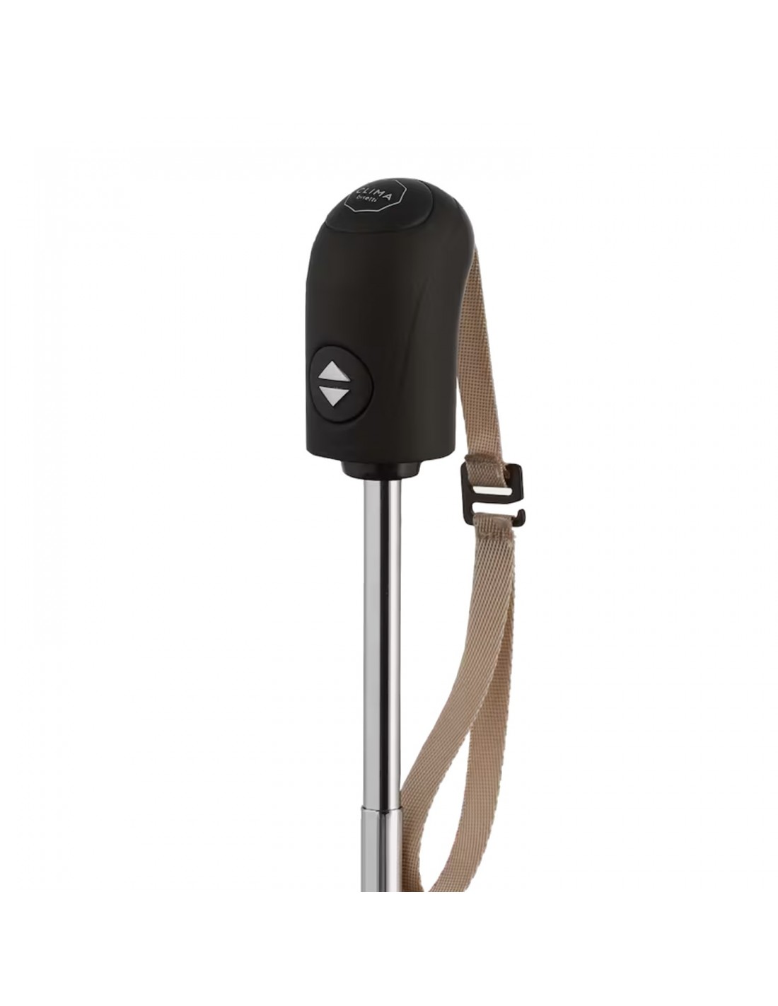 El paraguas Color Block de Clima Bisetti con puño negro está confeccionado en tejido liso de alta calidad en color azul, con detalles estampados en su funda a juego. Destaca por su elegancia y practicidad.