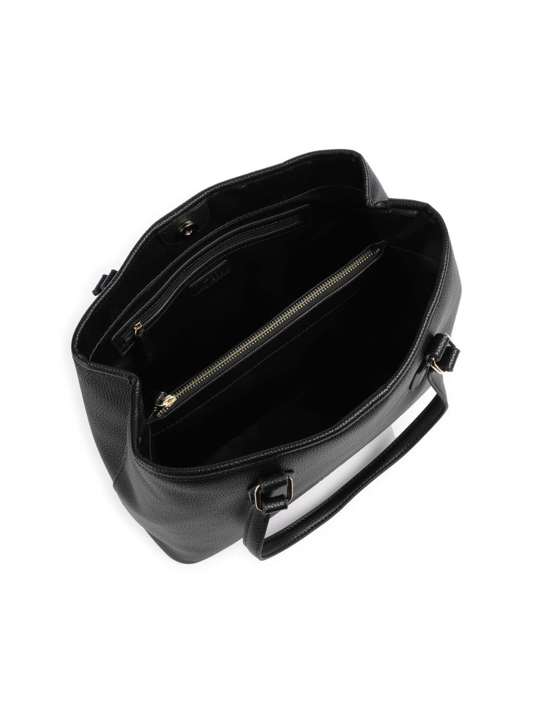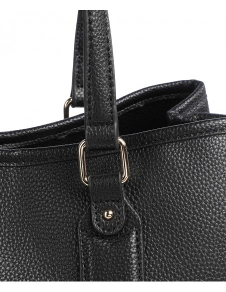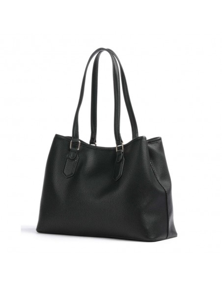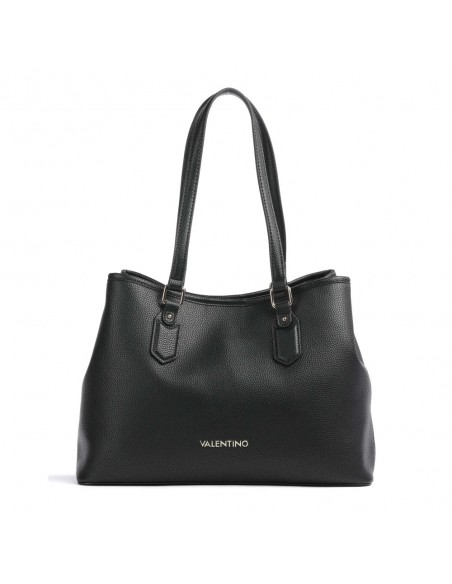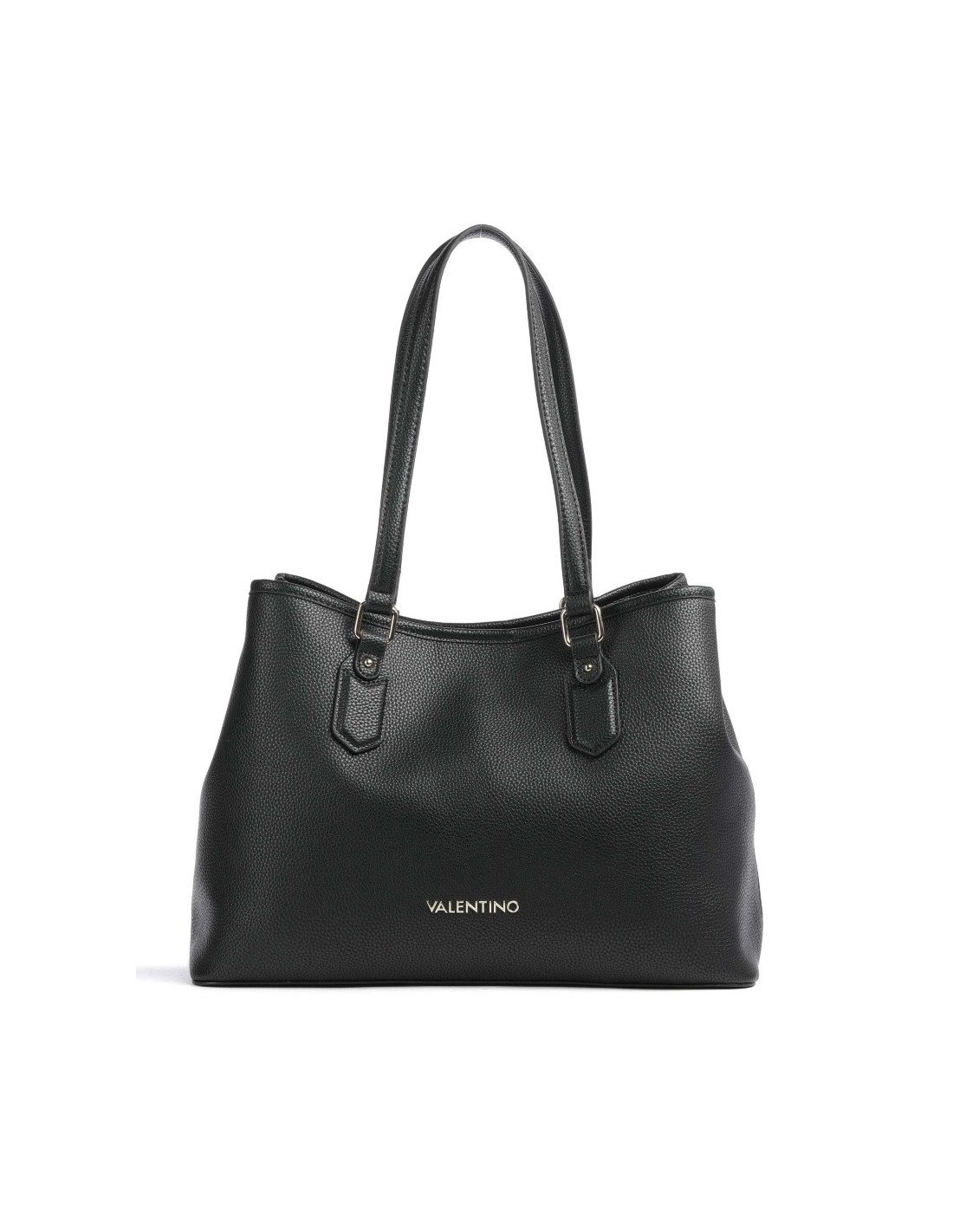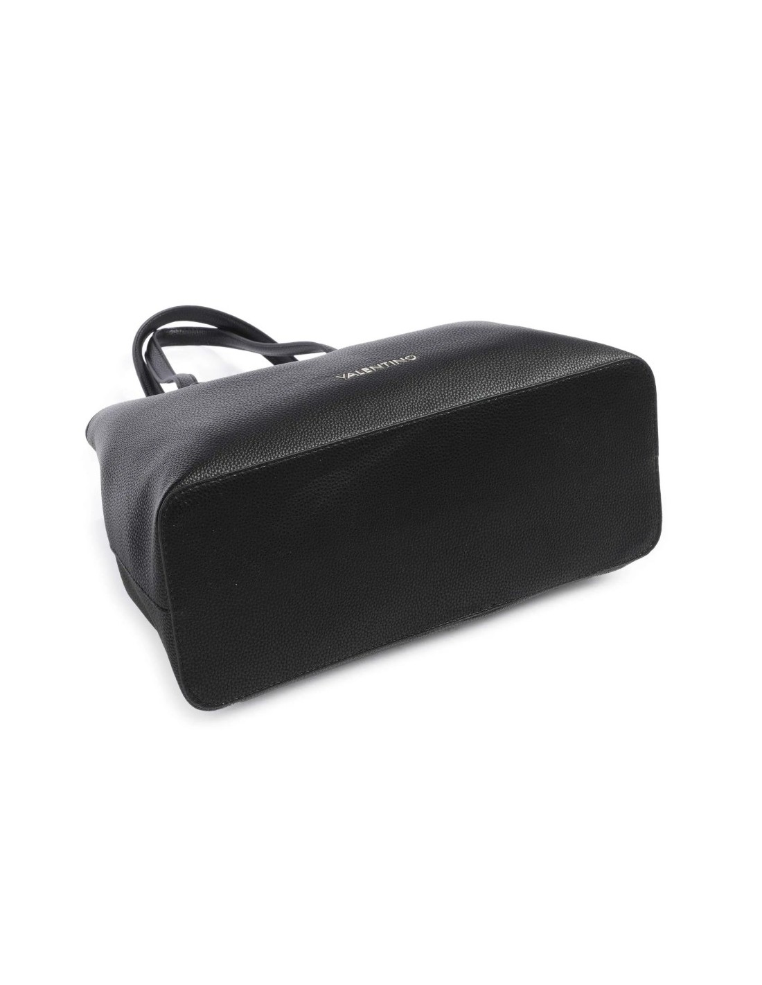 Confeccionado en PU rugoso color negro, el bolso shopper Valentino Bags Brixton y presenta un diseño con base reforzada y doble asa de hombro (caída 24cm).