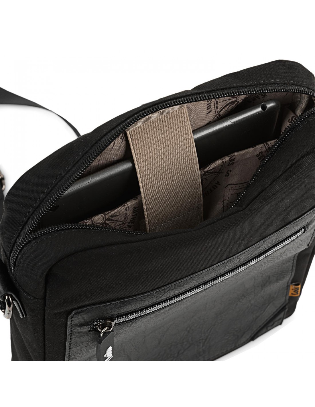 Confeccionada em uma resistente combinação de materiais, dispõe, após o seu fecho de correr, de um compartimento para a tablet e espaço para guardar chaves e telemóvel.