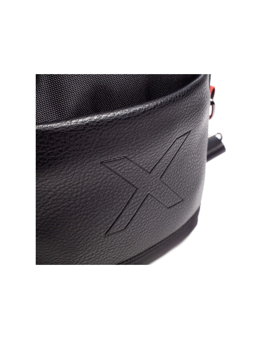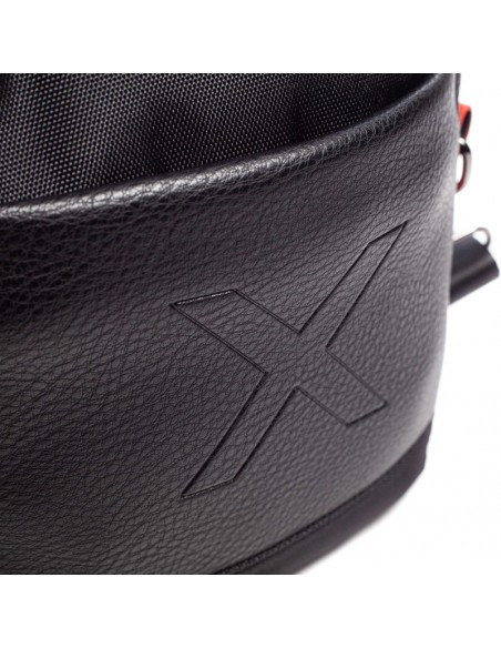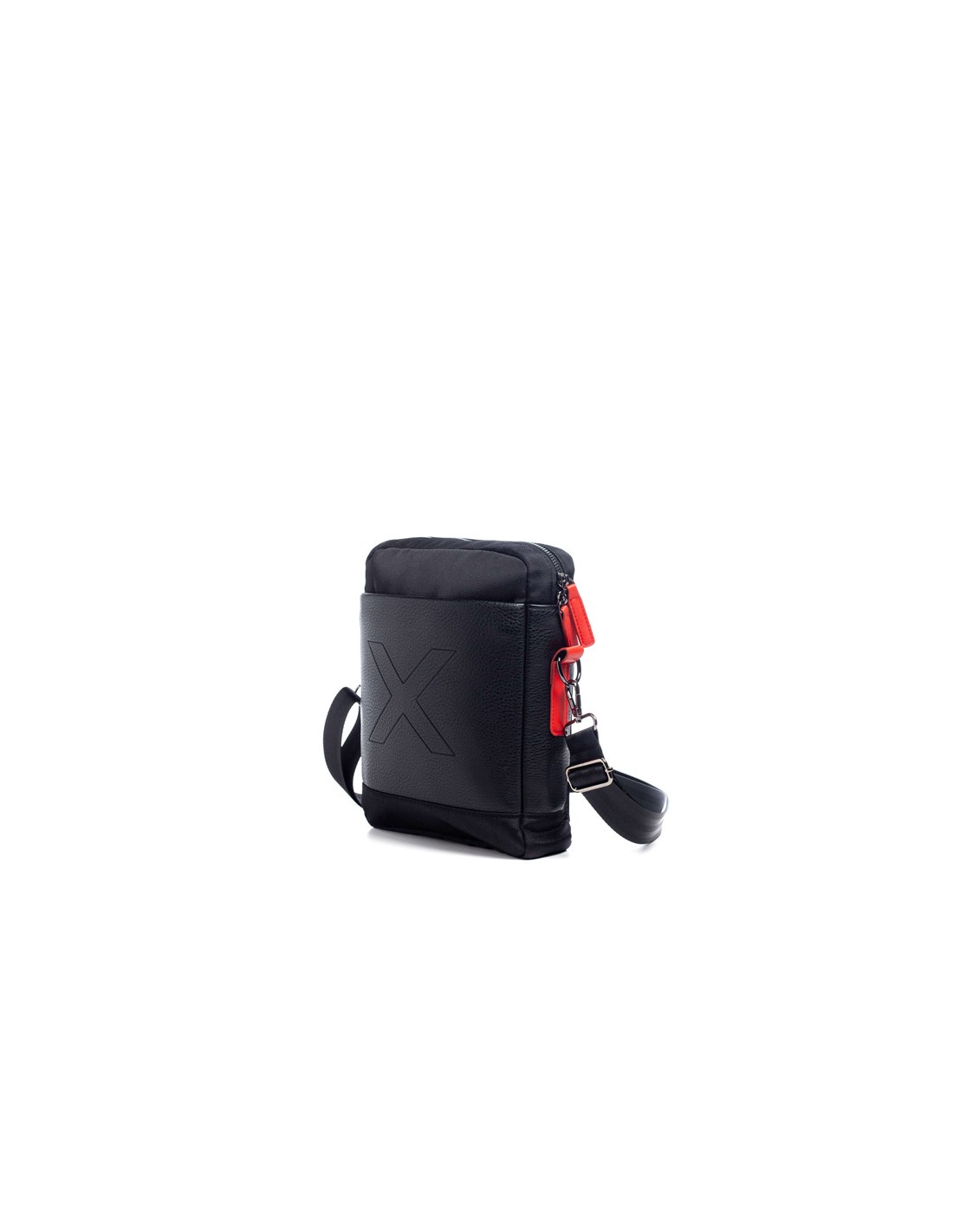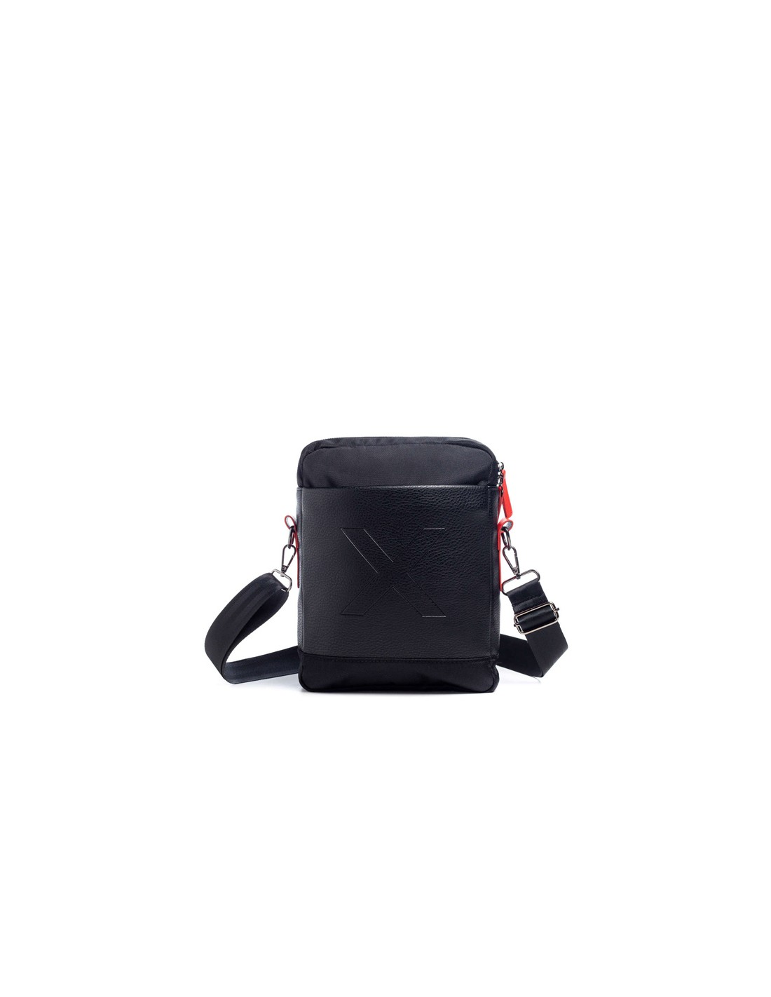 A bolsa crossover de homem City Black de Munique apresenta uma combinação de material técnico de nylon e PU. Na parte frontal, sobre o material PU com textura granulada, aparece gravado o símbolo de identidade da marca ""X"".
