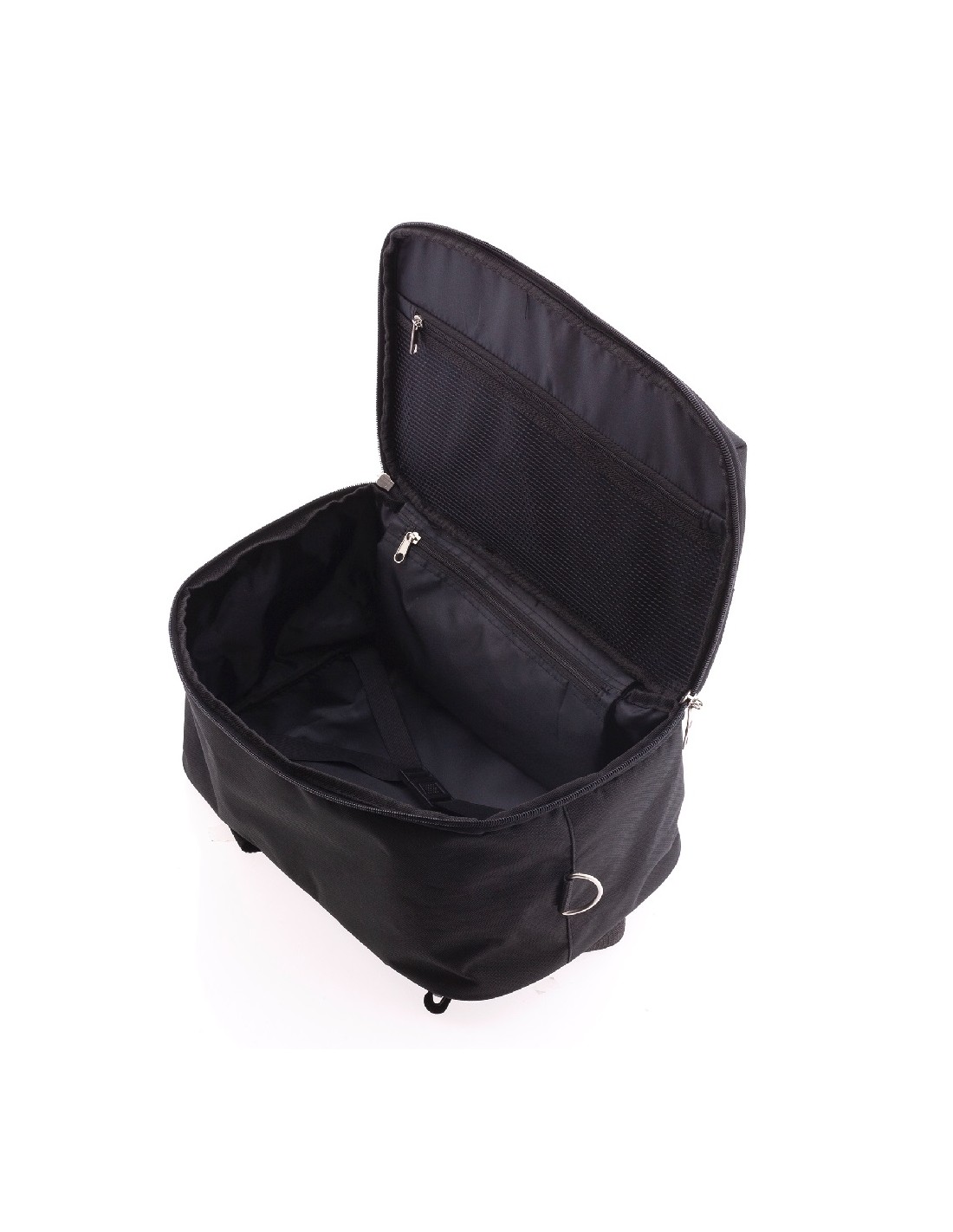 Com abertura tipo mala, a mala Gladiator conta com compartimento principal com fecho de zíper de duplo cursor e, no seu interior, algumas cintas cruzadas reservadas para a fixação de roupas e dois bolsos fechados, sendo um deles de rede.