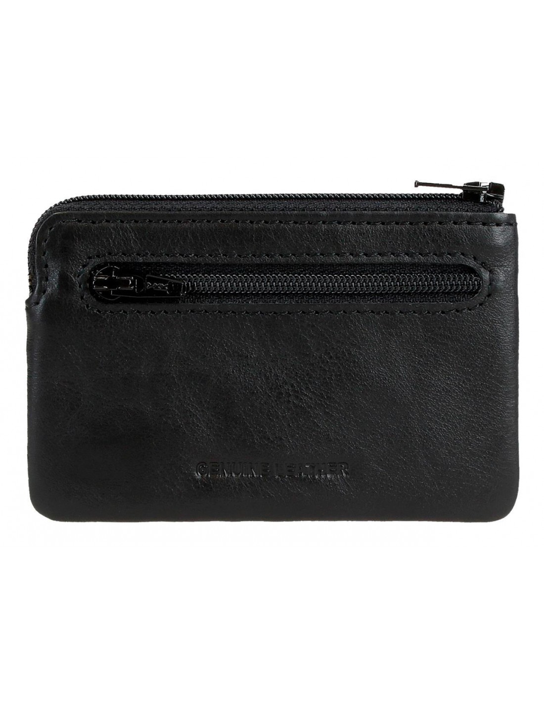 Inclui um compartimento principal com fecho, duas ranhuras para cartões e um bolso traseiro com fecho, perfeito para manter os seus objetos essenciais organizados.