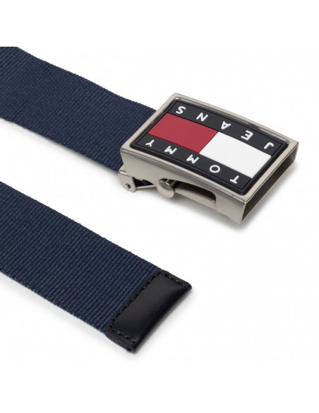 Cinto Tommy Jeans confecionado 100% em poliéster reciclado. Graças à utilização de materiais reciclados, consegue-se reduzir o impacto ambiental.