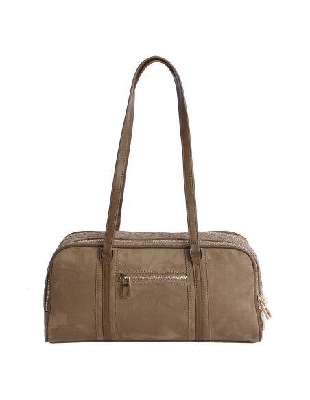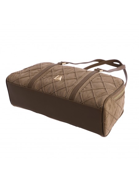 Bolso de Hombro Don Algodon Acolchado, Doble Compartimento, Ante, TaupeDon Algodon