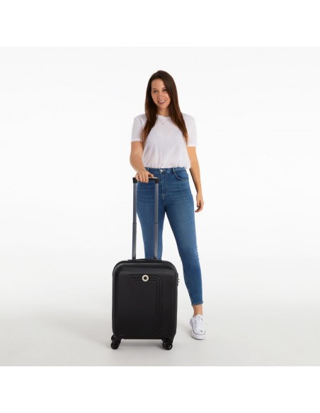 A mala de cabine Movom Riga, rígida, é fabricada em um material de ABS leve e resistente. Sendo impermeável, graças à sua carcaça, que evita que a água chegue ao seu interior.