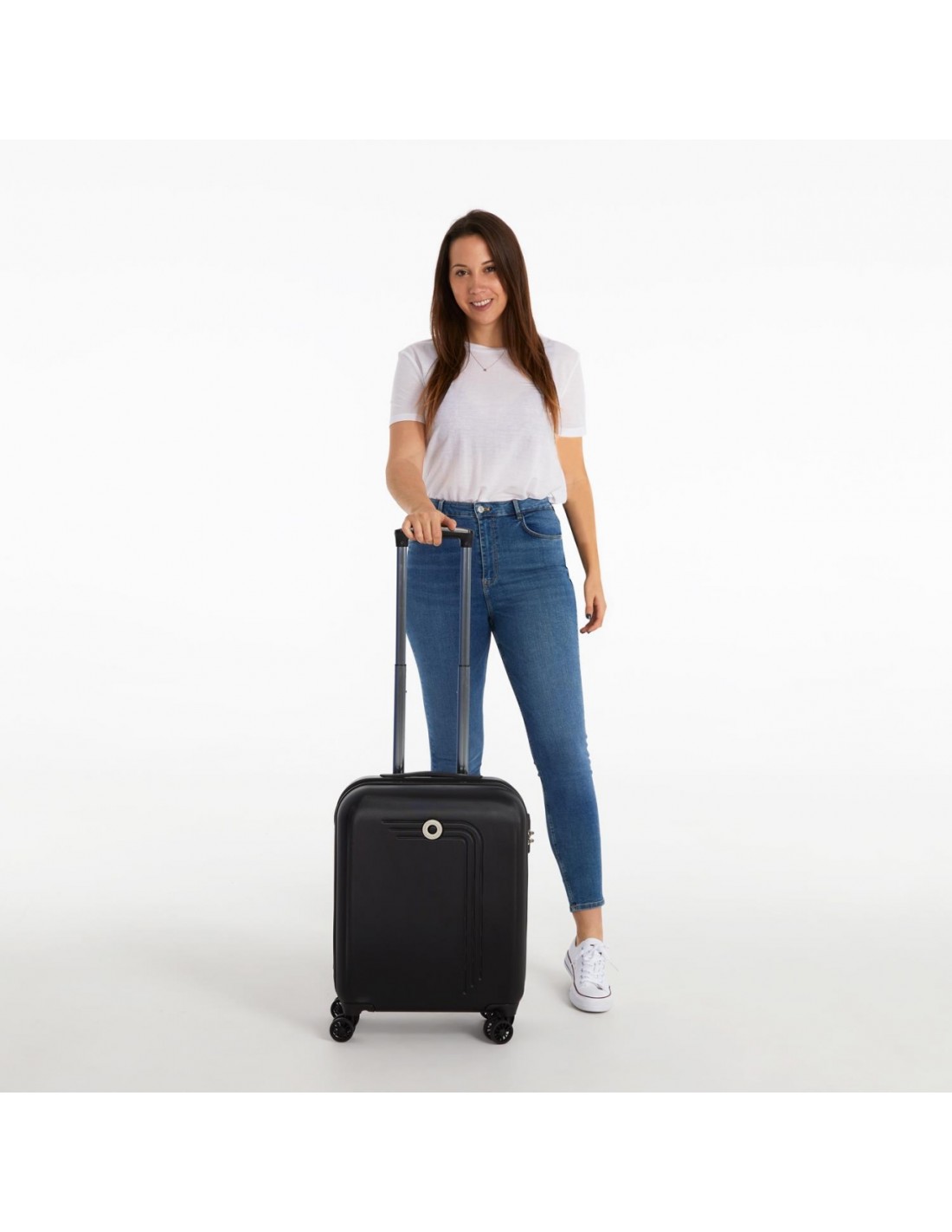 Esta mala de mão dispõe de 4 rodas duplas de rotação 360º que permitem um deslocamento com um rodar suave e fácil manobrabilidade.