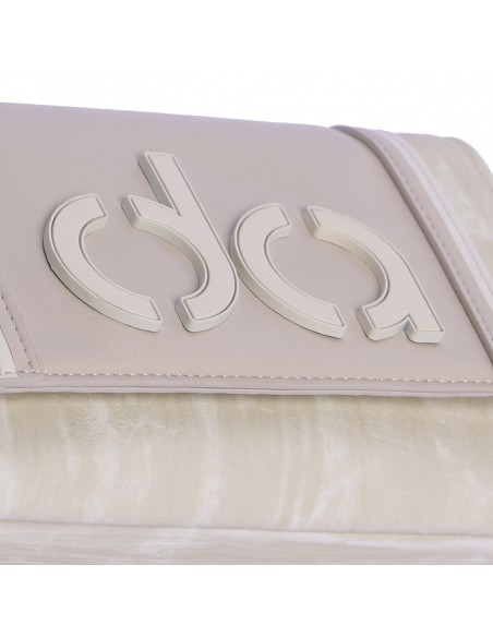 Confecionado em material sintético, a bandoleira don algodão é uma bolsa de aba com um grande logótipo frontal e apliques metálicos em cor prata.