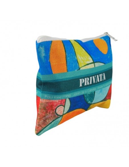 No bolso necessaire Privata podemos ver estampada a pintura "Jardim da Cabana" pintada em 1933 por Paul Klee.