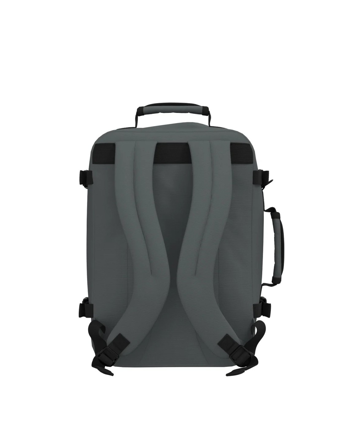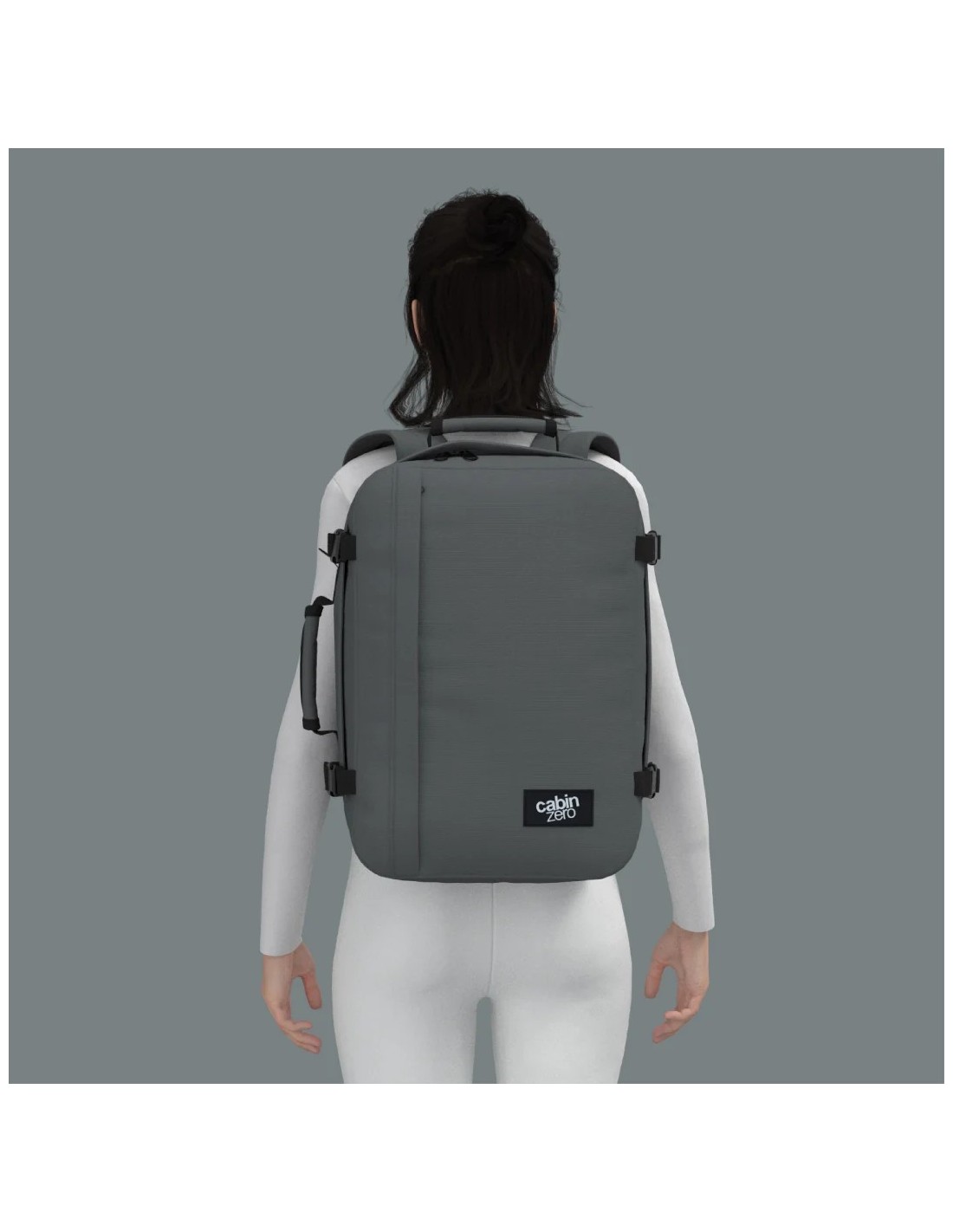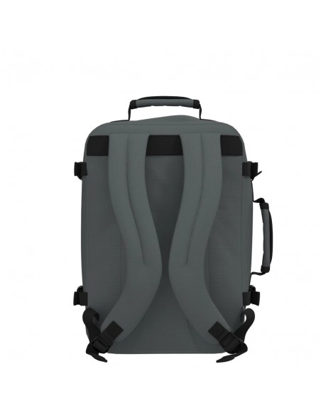 Dimensões: 44 cm (altura) x 30 cm (largura) x 19 cm (profundidade). Capacidade de 36 L e peso de 0,7 kg.